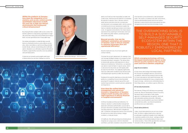 FEATURE: GENETEC ability to act before small irregularities escalate into costly losses. And because the platform consolidates thousands of cameras, doors, intrusion sensors, radar devices and intercoms into a unified view, security teams can investigate faster, enforce policies consistently and uncover operational insights that improve standard operating procedures and reduce costs. In regulated environments, this means teams spend less time searching for information and more time addressing what matters: protecting people, assets and continuity.