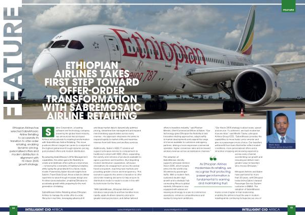 FEATURE offers to travellers instantly,” said Roshan Mendis, Chief Commercial Officer at Sabre.“ Our technology gives Ethiopian the flexibility to test innovative retailing approaches, adapt swiftly to market developments and expand the range of choices available to customers and agency partners, driving a more responsive commercial operation, higher conversion rates and increased ancillary revenue across all distribution channels.”