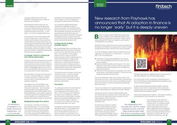 A key implication of the research is that self-identified‘ AI leaders’ are not a uniform group. The headline maturity number masks wide variation in how finance teams deploy AI in practice. Some organisations have embedded AI into workflows with clear accountability. Others are moving fast without minimum guardrails or investing with intent but lacking the foundations to scale. • www. intelligentcio. com