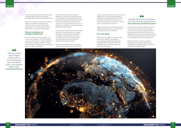 FEATURE and who captures the economic value of Africa’ s digital growth. The rapid scaling of traffic at leading exchanges in 2025 proves the model works when ecosystems are nurtured. But growth in isolated hubs is not enough. The next step is continental interconnection.