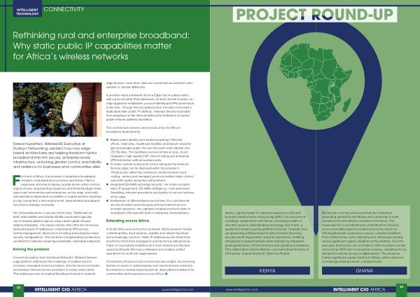 Connectivity should not just connect but also enable. By removing barriers to public IP addressability over hybrid wireless networks, the industry is moving toward practical, deployable broadband for communities and businesses across Africa. •