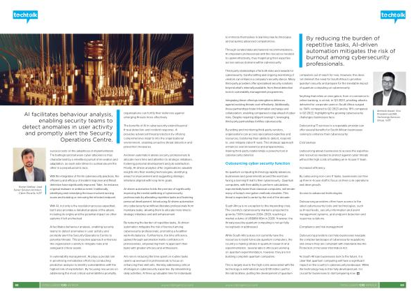 AI facilitates behaviour analysis , enabling security teams to detect anomalies in user activity and promptly alert the Security Operations Centre to potential threats . This proactive approach enhances the organisation ' s ability to mitigate risks and safeguard critical assets . organisations can fortify their defences against emerging threats more effectively .