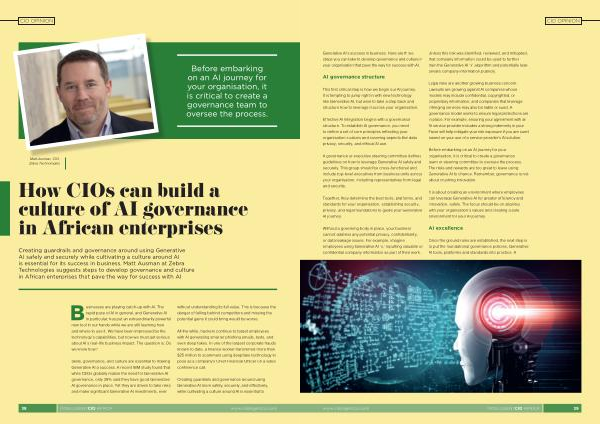 Creating guardrails and governance around using Generative AI safely and securely while cultivating a culture around AI is essential for its success in business . Matt Ausman at Zebra Technologies suggests steps to develop governance and culture in African enterprises that pave the way for success with AI .